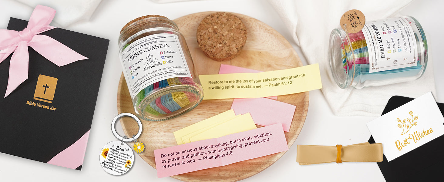 - What You will Get: You will receive a jar with bible verses, a keychain engraved with uplifting Bible verses and sunflower charm, and a champagne colored satin ribbon for creating a charming bow. All items are carefully packaged in a elegant gift box, making it perfect for gift giving